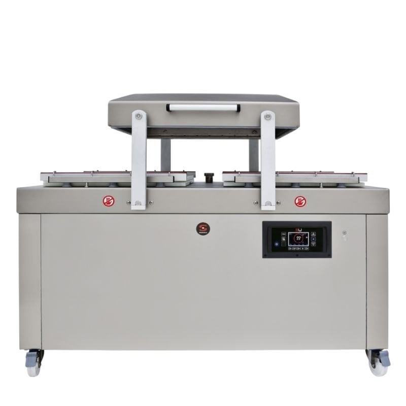 · 3,9” LCD renkli ekrana sahip dijital kontrol paneli: bir bakışta tüm bilgiler. · Aydınlatmalı dokunmatik klavye, sıvıların sıçramasına karşı korumalıdır. · Ambalajın dayanıklılığını sağlamak için çift conta sistemi. · Hem hazne hem de gövde paslanmaz çelikten imal edilmiştir. · Son derece dayanıklı polikarbonattan üretilmiş şeffaf kapak. · Programların hafızası: kilitleme imkanı ile 25 farklı vakum programını saklama kapasitesi. · Vakum arızasına karşı korumalı güvenlik sistemi. · Pompayı kurutmak için kuru yağ programı. · Yağ değişimleri için çalışma saatleri sayacı. · 230-400V/50-60Hz/3N · NSF sertifikalıdır. Sammic Vakumlu Paketleme Makinesi; · Stok Kodu: SU-6160 · Ürün No: 1141050 · Vakum Pompası: 155 m3/h · Bar Uzunluğu: 4 x 662 mm · Basınç: 0.5 mbar · Ölçüler: 960x757x998 mm